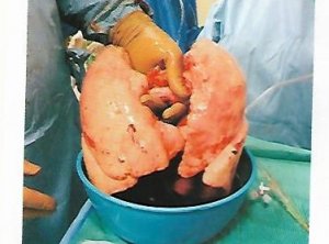 Płuca biorcy miały liczne krwiaki wielkości 1-2 cm pokrywające znaczną powierzchnię obu płuc, płuca dawcy były znacznie zmniejszone, zwątrobiałe, restrykcyjnie z powodu procesu włóknienia, który zachodzi w przebiegu zapalenia wywołanego SARS-COv-2. W żaden sposób nie przypominały tkanki, która jest elastyczna, delikatna i miękka jaką są zdrowe płuca.